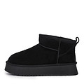 Уютные черные угги из мягкого бархатистого спилка. Пара утеплена натуральной шерстью. Высокая подошва из материала ТЭП отвечает за хорошее сцепление с поверхностью и надежную защиту стоп от холода. Петля на голенище ускоряет процесс надевания обуви.
