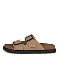 Женские летние шлепанцы в стиле биркенштоки из натурального замшевого велюра бежевого цвета. Удобная танкетка и толстая подошва обеспечивают комфорт при ходьбе.
