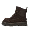 Актуальные коричневые ботинки с высокой шнуровкой. Верх выполнен из прочного спилка с бархатистой фактурой. Шерстяные подкладка и стелька поддерживают комфортную температуру внутри обуви на улице и в помещении. Высокая резиновая подошва с глубоким рисунком протектора отличается прочностью и хорошим сцеплением с поверхностью.
