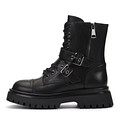 Актуальные высокие ботинки в байкерском стиле. Материал верха - мягкая кожа из спилка. Подкладка и стелька утеплены ворсином. Шнуровка помогает плотно зафиксировать пару, а молния облегчит процесс надевания. Высокая тракторная подошва из резины обеспечит устойчивость на любых покрытиях.