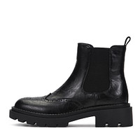 Классические коричневые челси с деликатным брогированием в носовой части. Материал верха - мягкая кожа из спилка. Подкладка и стелька утеплены ворсином. Петля в задней части облегчит процесс надевания. Высокая тракторная подошва из резины обеспечит надежное сцепление с любой поверхностью.