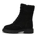 Женские ботинки изготовленные из спилка 85% и искусственного меха 15%. Модель дополнили боковой молнией. Подкладка и стелька выполнены из натуральной шерсти, благодаря ей ноги остаются тёплыми, обеспечивая комфорт в любые зимние будни. Зимние ботинки с резиновой подошвой 43 мм — она обеспечивает сцепление, долговечность и уверенность при каждом шаге.