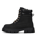 Базовые черные ботинки в стиле рабочей обуви. Верх сочетает матовую и глянцевую кожу из спилка. Пара утеплена натуральной шерстью. Высокая тракторная подошва из материала ТЭП отличается износостойкостью и хорошим сцеплением с поверхностью.