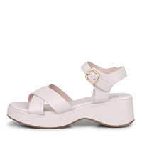 Минималистичные кожаные босоножки на изогнутой танкетке. Верх летних босоножек выполнен из искусственной кожи. Широкие ремешки с мягкой кожаной подкладкой надежно фиксируют обувь на ноге. Стелька изготовлена из натуральной кожи. Подошва из термопластичной резины обеспечивает оптимальную поддержку стоп. Модель отлично впишется в образы с платьями, брюками, воздушными юбками и шортами.