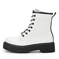 Акцентные белые ботинки на платформе. Верх выполнен из современной искусственной кожи. Подкладка и стелька утеплены мягким ворсином. Широкая рифленая подошва из материала ТЭП отличается легкостью, прочностью и хорошим сцеплением с любой поверхностью. Модель с высокой шнуровкой и удобной застежкой на молнию.