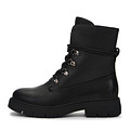 Классические черные ботинки с высокой шнуровкой. Материал верха - современная искусственная кожа. Голенище опоясывает декоративный ремешок в тон модели. Подкладка и стелька утеплены ворсином. Боковая молния облегчает процесс надевания обуви. Высокая подошва из материала ТЭП отличается прочностью и хорошим сцеплением с поверхностью.