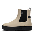 Базовые бежевые ботинки в стиле челси. Верх выполнен из бархатистого искусственного нубука, модель дополнительно утеплена мягким ворсином. Контрастная эластичная резинка плотно фиксирует пару на ноге. Высокая подошва из материала ТЭП отличается морозостойкостью и долговечностью.