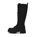 Стильные черные сапоги с высокой шнуровкой. Материал верха - прочная искусственная кожа. Подкладка и стелька утеплены ворсином. Для удобства надевания предусмотрена молния. Тракторная подошва из материала ТЭП отличается высокой морозоустойчивостью и прочностью.