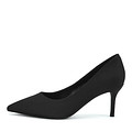 Минималистичные черные туфли из текстиля. Мягкая кожаная подкладка и стелька формируют хороший воздухообмен. Изящный каблук высотой 75 мм обеспечивает равномерное распределение нагрузки по стопе.