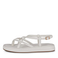 Легкие белые кожаные сандалии с тонкими ремешками. Пара со стелькой из искусственной кожи обеспечивает комфорт в течение всего дня. Гибкая подошва из материала ТЭП поддерживает стопы в оптимальном положении. Пара отлично впишется в образы с платьями, шортами и юбками.