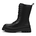 Стильные черные полусапоги с высокой шнуровкой. Материал верха - мягкая кожа из спилка. Подкладка и стелька утеплены натуральной шерстью для оптимального теплообмена на улице и в помещении. Высокая тракторная подошва из ТЭП отличается легкостью, морозоустойчивостью и хорошим сцеплением с любой поверхностью. Модель с удобной застежкой на молнию.