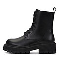 Лаконичные черные ботинки с высокой шнуровкой. Верх выполнен из практичной кожи из спилка. Подкладка и стелька утеплены мягким ворсином. Удобная боковая молния ускоряет процесс фиксации пары. Высокая тракторная подошва из материала ТЭП отличается прочностью и хорошим сцеплением с поверхностью.