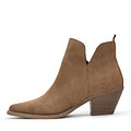 Утонченные ботильоны с архитектурным дизайном из бархатистого спилка. Подкладка и стелька утеплены ворсином. В модели предусмотрена удобная молния. Резиновая подошва отличается прочностью. Устойчивый скошенный каблук высотой 6,8 см грамотно распределяет нагрузку на стопы.