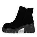 Стильные черные ботильоны с графичным дизайном. Верх выполнен из бархатистого спилка. Стелька утеплена натуральной шерстью для оптимальной терморегуляции внутри пары. Высокая резиновая подошва с выраженными протекторами обеспечивает надежное сцепление с любой поверхностью. Устойчивый каблук высотой 7,5 см грамотно распределяет нагрузку на стопы.