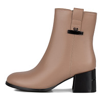 Кожаные черные ботильоны на графичном устойчивом каблуке. Пара утеплена мягким ворсином. Модель с молнией дополнена практичной петлей на голенище, ускоряющей процесс надевания обуви.