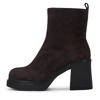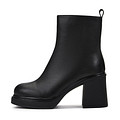 Минималистичные черные ботильоны из мягкой кожи из спилка. Подкладка и стелька утеплены натуральной шерстью. Утолщенная подошва из материала ТЭП отличается прочностью и хорошим сцеплением с поверхностью. Широкий устойчивый каблук высотой 9 см грамотно распределяет нагрузку на ноги.
