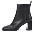 Эффектные черные кожаные ботильоны. Пара утеплена мягким ворсином на подкладке и стельке. Графичный каблук высотой 78 мм позволяет нагрузке гармонично распределяться по стопе и обеспечивает устойчивость.