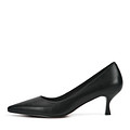 Минималистичные черные кожаные туфли на фигурном каблуке. Комфорт стоп обеспечивают кожаные подкладка и стелька. Изящный каблук высотой 45 мм гарантирует оптимальную поддержку. Пара отлично впишется в образы с брючными костюмами, воздушными юбками и платьями.