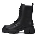 Лаконичные черные кожаные ботинки с высокой шнуровкой. За комфорт стоп отвечают подкладка и стелька, выполненные из мягкого ворсина. Рифленая подошва из ТЭП обеспечивает устойчивость на любых покрытиях даже в дождь. Модель дополнена удобной застежкой на молнию. Практичная петля на голенище ускоряет процесс фиксации обуви.