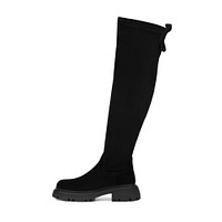 Акцентные черные ботфорты с гладкой фактурой. Пара утеплена ворсином. Модель с удобной застежкой на молнию и практичной петлей на голенище. Рифленая подошва из материала ТЭП подстраивается под движения стопы и обеспечивает надежное сцепление с поверхностью в любую погоду.