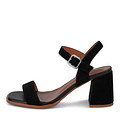 Эффектные черные велюровые босоножки с квадратной формой носочной части. Комфорт стоп обеспечивают кожаная подкладка и стелька из нежной кожи шевро. Пара отлично впишется в образы с брючными костюмами, воздушными платьями и юбками. Широкий каблук высотой 77 мм формирует оптимальную поддержку и гарантирует устойчивость.