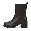 Элегантные теплые ботильоны в актуальном шоколадном оттенке. Верх выполнен из зернистой кожи из спилка. Подкладка и стелька из натуральной шерсти поддерживают комфортную температуру внутри обуви на улице и в помещении. Утолщенная подошва из материала ТЭП отличается легкостью, долговечностью и хорошим сцеплением с любой поверхностью. Устойчивый блочный каблук высотой 6,8 см грамотно распределяет нагрузку на стопы.