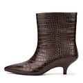 Коричневые ботильоны с тиснением под рептилию изготовили из кожи из спилка. Модель со свободным голенищем без молнии. Подкладка и стелька из ворсина — идеальный баланс: удерживает тепло, но при этом «дышит», не позволяя ногам вспотеть и замёрзнуть. Материал подошвы демисезонной обуви - резина, высота каблука 52 мм.