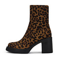 Акцентные ботильоны из плотного текстиля с анималистичным принтом. Подкладка и стелька утеплены мягким ворсином. Утолщенная резиновая подошва отличается прочностью и устойчива к истиранию. Широкий блочный каблук высотой 8,5 см грамотно распределяет нагрузку на стопы.