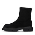 Повседневные черные ботинки. Верх выполнен из плотного текстиля. Подкладка и стелька утеплены мягким ворсином. Высокая тракторная подошва из материала ТЭП обеспечивает устойчивость на любых поверхностях.