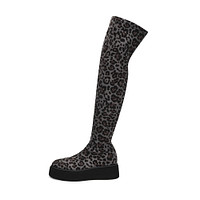 Эффектные черные облегающие ботфорты. Верх выполнен из плотного текстиля. Подкладка и стелька утеплены мягким ворсином. Высокая подошва из материала ТЭП обеспечивает устойчивость на любых поверхностях.