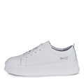 Минималистичные белые кожаные кеды на платформе. За хорошую вентиляцию и комфортную посадку отвечают подкладка и стелька, изготовленные из натуральной кожи. Модель с прочной шнуровкой. Гибкая подошва из полиуретана отличается легкостью и быстро адаптируется к движению стопы.