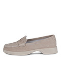 Эффектные бежевые лоферы из мягкого бархатистого спилка. Комфорт стоп гарантируют кожаная подкладка и стелька. Гибкая полиуретановая подошва формирует оптимальную поддержку. Модель отлично дополнит образы с юбками, платьями и брюками.