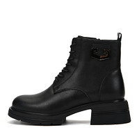 Стильные черные ботинки с высокой шнуровкой. Верх из натуральной кожи из спилка надежно защитит стопы от ветра и влаги. Подкладка и стелька утеплены мягким ворсином. Утолщенная резиновая подошва обеспечивает надежное сцепление с поверхностью.