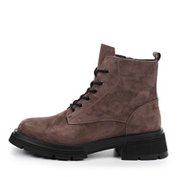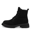 Лаконичные черные ботинки из мягкого велюра. Пара утеплена ворсином. Толстая рифленая подошва из материала ТЭП обеспечивает хорошую поддержку стоп и отличное сцепление с поверхностью. Модель с графичным язычком, высокой шнуровкой и удобной петлей на голенище, ускоряющей процесс фиксации обуви.