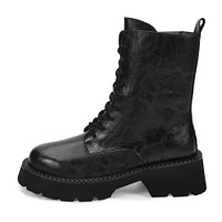 Стильные коричневые ботинки с высокой шнуровкой. Верх выполнен из кожи из спилка с трендовым эффектом помятости. Пара утеплена натуральной шерстью. Высокая тракторная подошва из материала ТЭП отличается износостойкостью и хорошим сцеплением с поверхностью.