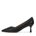 Классические черные туфли-лодочки с декоративной носовой частью. Модель выполнена из гладкой натуральной кожи. Гибкая подошва из тунита отличается прочностью. Тонкий устойчивый каблук киттен-хилл высотой 6,5 см придает паре утонченный вид.