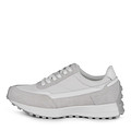 Белые кожаные женские кроссовки с текстильными вставками. Модель с подкладкой и стелькой из дышащего текстиля, гарантирующего отличный воздухообмен. Гибкая подошва из материала ТЭП обеспечивает комфорт при движении. Утолщенный ворот бережно поддерживает щиколотки.
