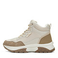 Лаконичные высокие молочные кроссовки привнесут нотку спортивного шика в любой образ. Верх сочетает современную искусственную кожу и плотный текстиль. Подкладка и стелька утеплены мягким ворсином. Комбинированная подошва из материалов ТЭП и ЭВА обеспечивает хорошую амортизацию обуви и надежное сцепление с любой поверхностью.