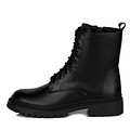 Высокие черные женские ботинки из гладкой натуральной кожи. Пара утеплена мягким ворсином, обеспечивающим комофрт стоп в любую погоду. Плотная подошва из ТЭП гибкая и прочная, она гарантирует оптимальную поддержку стоп. Модель дополнена удобной застежкой на молнию и шнуровкой. Петля на голенище ускоряет процесс надевания обуви.