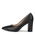 Акцентные черные туфли из кожи с фактурой «под рептилию». Подкладка выполнена из натуральной кожи, стелька — из мягкой кожи шевро. Туфли-лодочки с устойчивым каблуком высотой 90 мм и заостренной носочной частью гармонично дополнят деловые и повседневные образы.