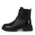 Черные женские ботинки из двух видов кожи. Микс фактур добавляет паре характера. Ботинки утеплены мягким ворсином, обеспечивающим комофрт стоп в любую погоду. Плотная подошва из ТЭП гибкая и прочная, она гарантирует оптимальную поддержку стоп. Модель дополнена удобной застежкой на молнию.