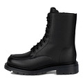 Базовые черные ботинки из мелкозернистой натуральной кожи. Подкладка и стелька изготовлены из густого натурального меха. Массивная рифленая подошва из материала ТЭП  надежно защищает стопы от холода и обеспечивает комфорт при ходьбе. Модель с застежкой на молнию и прочной шнуровкой.  Ботинки отлично дополнят образы с брюками, джинсами и платьями.