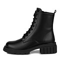 Черные женские ботинки из гладкой натуральной кожи. Подкладка и стелька выполнены из мягкого ворсина, обеспечивающего комофрт стоп в любую погоду. Рифленая резиновая подошва гарантирует оптимальную поддержку стоп и устойчивость на разных покрытиях даже в дождь. Модель со шнуровкой дополнена удобной застежкой на молнию и практичной петлей на голенище, ускоряющей процесс фиксации обуви.