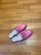 Акцентные розовые сабо из шевро. Комфорт стоп обеспечивают кожаная подкладка и стелька, выполненная из нежной кожи шевро. Гибкая подошва из тунита гарантирует оптимальную поддержку. Пара отлично впишется в образы с брючными костюмами, воздушными платьями и юбками.
