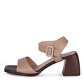 Базовые бежевые босоножки на графичном каблуке. Верх изготовлен из матовой кожи шевро. Подкладка из натуральной кожи и стелька из шевро формируют оптимальный воздухообмен. Фигурный каблук высотой 67 мм гарантирует равномерное распределение нагрузки по стопе.