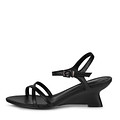 Изящные черные кожаные босоножки на танкетке. Стелька выполнена из нежной кожи шевро. Застежка на классический замок с пряжкой. Танкетка высотой 55 мм поддерживает стопы в оптимальном положении.