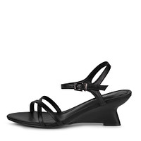 Изящные серебряные кожаные босоножки на танкетке. Стелька выполнена из нежной кожи шевро. Застежка на классический замок с пряжкой. Танкетка высотой 55 мм поддерживает стопы в оптимальном положении.