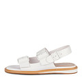 Белые кожаные сандалии. Широкие ремешки с подкладкой из мягкой натуральной кожи бережно фиксируют пару на ноге. Легкая подошва из тунита формирует оптимальную поддержку и устойчивость. Пара идеально впишется в образы для жаркой погоды.