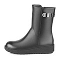 Минималистичные черные полусапоги на холодный сезон. Верх из гладкой натуральной кожи надежен и прост в уходе. Меховые подкладка и стелька поддерживают комфортную температуру внутри обуви даже в сильный мороз. Высокая подошва из материала ТЭП отличается прочностью, гибкостью и хорошим сцеплением с любой поверхностью.