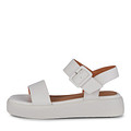 Белые кожаные сандалии с широкими ремнями на танкетке. Натуральная кожаная подкладка и стелька из нежной кожи шевро обеспечивают комфорт и хорошую вентиляцию. Высокая подошва из полиуретана отличается легкостью и формирует отличное сцепление с любой поверхностью. Летние сандалии дополнены застежкой на крупную пряжку.